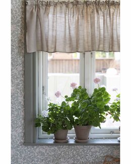 Hieno verhokappa, 79 % polyesteriä ja 21 % viskoosia. Takana oleva nauha mahdollistaa erilaiset ripustukset. Koko 55 x 250 cm, väri pellavanvärinen.