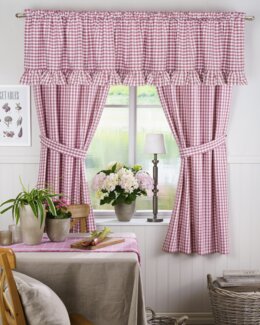 Tyylikäs verhokappa lankavärjättyä ruutukuviota. Kuvion ansiosta kapan molemmat puolet näyttävät yhtä hienoilta. Useita kauniita värejä. Materiaali: 100 % puuvillaa. Koko: 45 x 250 cm. Pesu: 40°.