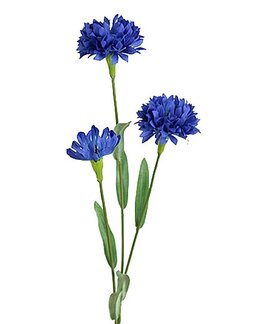 Klassinen keinotekoinen ruiskaunokin oksa. Pitkät ja ohuet vihreät lehdet sekä siniset kauniit mykeröt oksien kärjissä. Luonnossa tämä kukka yhdistetään vahvasti kevään tuloon ja lämpimiin kesäpäiviin. Valmista kaunis kimppu koristamaan keittiötä tai käytä juhannusseppeleen koristeena.