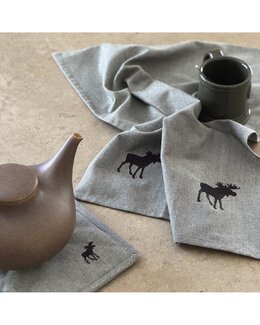 Upeat keittiöpyyhkeet, joihin kirjotut kolme hirveä tuovat mieleen pohjoisen metsän ja luonnon. Kuvio on kirjottu näihin...