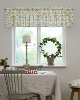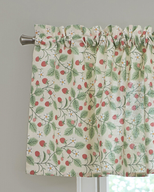 Tuo kesän tunnelma kotiisi tällä hurmaavalla verhokapalla, jossa on mansikkakuvio. Suloiset punaiset mansikat, vihreät lehdet ja pienet kukat luovat kodikkaan ja maalaismaisen fiiliksen – täydellinen keittiöön, mökille tai kesäasunnolle. Verhokappa päästää valoa sisään ja kehystää ikkunan kauniisti.