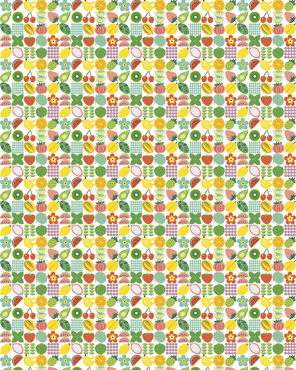 Kaunis metreittäin myytävä kangas, jossa on hedelmäkuvio – sopii täydellisesti tuomaan keittiöön raikasta, värikästä ja ...