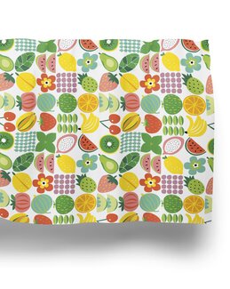Koristeellinen kappakangas, jossa on yhdistelmänauha ja hedelmäkuosi – täydellinen valinta keittiöön tuomaan raikasta, v...