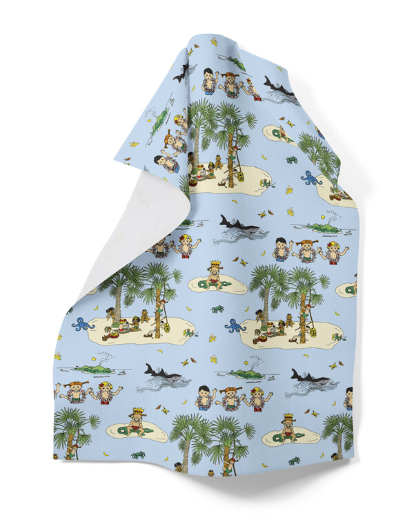 Koristeellinen keittiöpyyhe, jonka on suunnitellut Ingrid Vang Nyman ja jonka inspiraationa ovat toimineet Kurrekurreduttsaari sekä Peppi ystävineen. Tämä pyyhe tuo keittiöön värikästä, leikkisää ja mielikuvituksellista ilmettä. Hurmaava yksityiskohta, joka levittää iloa ja luo eloisan ja viihtyisän tunnelman.