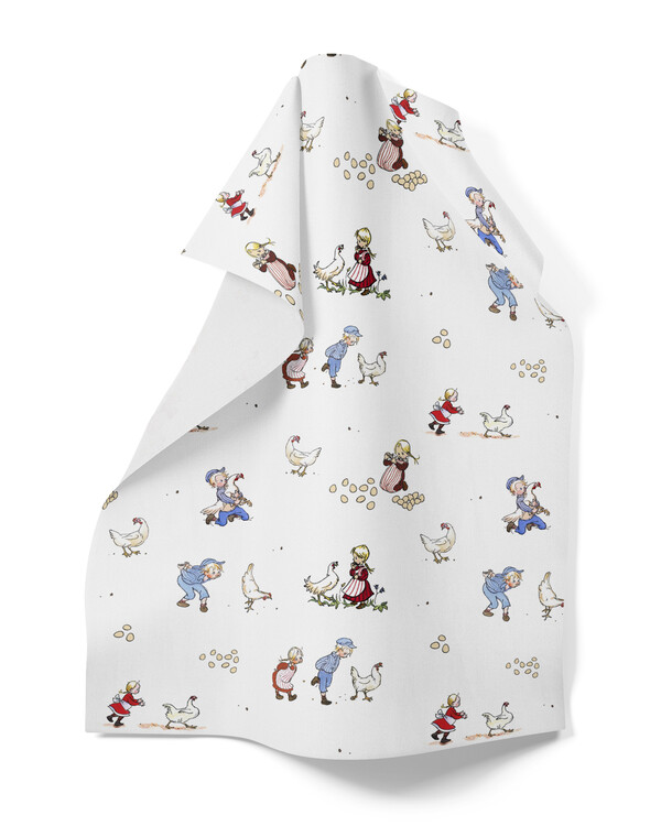 Keittiöpyyhe Eemeli ja Iida kanatarhassa