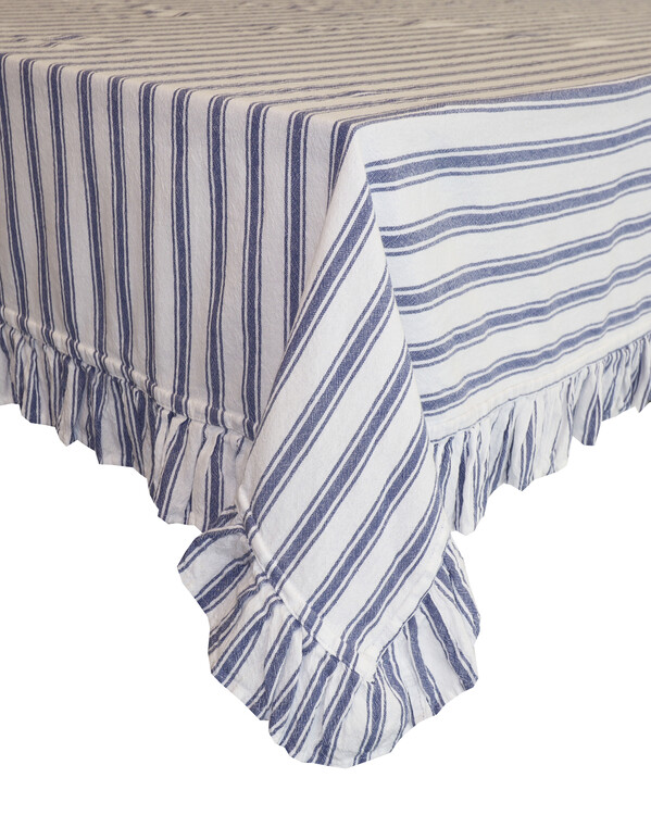 Pöytäliinat & kaitaliinat > Pöytäliinat > Pöytäliina Madicken raidallinen ja röyhelöreunainen