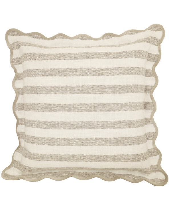 Raidallinen tyynynpäällinen, jossa on 4 cm leveä aaltoreuna ja värisävyyn sopiva kanttaus – tyylikäs yksityiskohta kotii...