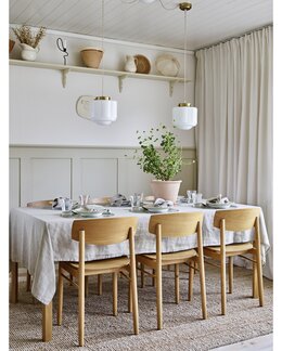 Pöytäliina on valmistettu 100 % pestystä pellavasta, ja siinä on huolitellut reunat. Tämän pöytäliinan materiaali on rustiikkista tukevaa kangasta, ja saat siitä ehdottoman luottotuotteen, joka tekee kattauksesta astetta näyttävämmän – sopii loistavasti sekä arkeen että juhlaan.