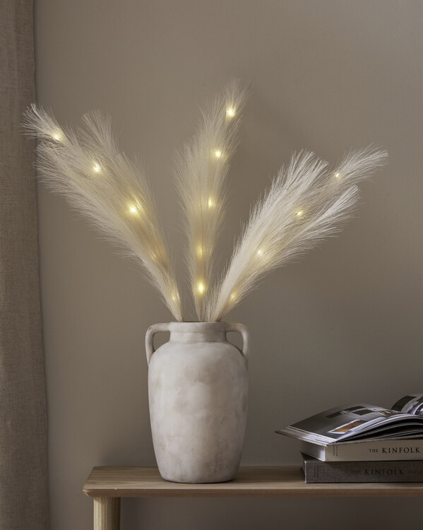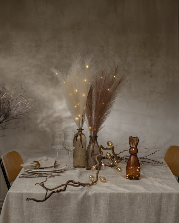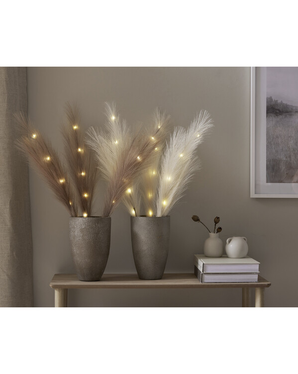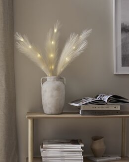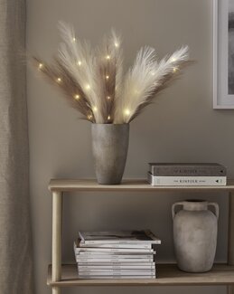 Suurehkot, aidon näköiset höyhenet maanläheisissä sävyissä luovat elegantin ja harmonisen ilmeen, joka sopii täydellisesti sekä moderniin että klassiseen sisustukseen. Paristokäyttöisyyden ansiosta koristeen voi sijoittaa juuri sinne minne haluat – täysin ilman johtoja. Aseta se kodin hämärään nurkkaan, hyllylle, maljakkoon tai sivupöydälle ja luo tunnelmallinen katseenvangitsija.