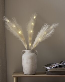 Luo kotiisi lämmin ja viihtyisä tunnelma tällä paristokäyttöisellä sisustusvalolla, jossa on ruskeita ja valkoisia keinotekoisia koristehöyheniä. Koristeessa on kolme koristeellista oksaa, jotka on kiinnitetty joustavaan johtoon, ja jokaisessa oksassa on 5 lämpimänvalkoista LED-lamppua, jotka luovat pehmeää, miellyttävää ja tunnelmallista valoa.