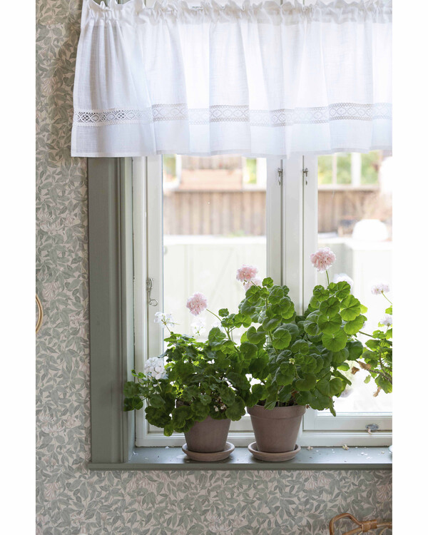 Upea verhokappa, jossa on kaunista pitsiä. Tyylikäs yhdistelmä saman sarjan yhdistelmänauhaverhojen ja laskosverhojen ka...
