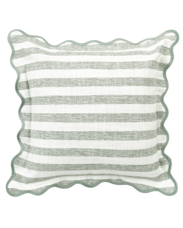 Raidallinen tyynynpäällinen, jossa on 4 cm leveä aaltoreuna ja värisävyyn sopiva kanttaus – tyylikäs yksityiskohta kotii...